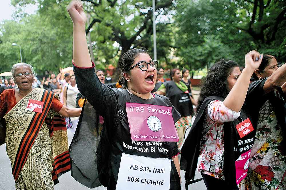 राजनीति में महिला आरक्षण के विचार पर भारत में पहली बार 1990 के दशक की शुरुआत में चर्चा हुई थी, भारतीय संविधान में 73वें और 74वें संशोधन की सिफारिशों के बाद, जिसमें स्थानीय पंचायतों (ग्राम परिषदों) में महिलाओं के लिए सीटें आरक्षित करने की मांग की गई थी।